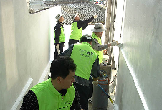 KT 전북동부 NSC(지사장 홍득표)는 전주시 금암동에 있는 새터민공동체의 이삿짐을 옮기고 페인트 칠로 밝고 깨끗한 사무실 환경을 마련하는데 도움을 주는 등 새 보금자리 단장에 힘을 보탰다.