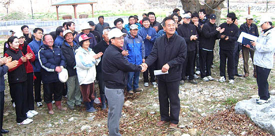 한국정보통신 측은 수락마을에 사과나무 1000주를 기증했다.