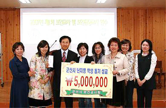 이날 전달된 성금은 군산시 보건교사회가 지난해 12월 난치병 학생돕기 음식바자회를 열어 마련한 것으로 군산지역 난치병 학생 21명에게 지원될 예정이며, 보건교사회는 보건교사와 난치병 학생간 1대1 결연을 통해 학생들을 지속적으로 보살필 계획이다.
