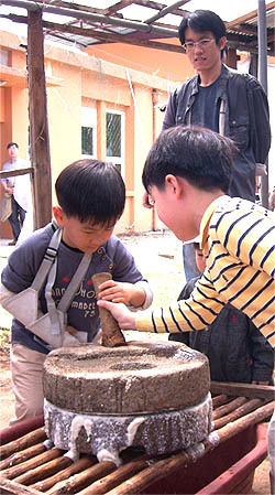 두부만들기 체험에 참여한 김근영군(8, 인천 연수구 옥련동)은 “TV로만 봤던 맷돌을 직접 돌려보니 그저 신기할 뿐”이라며 즐거워 했다.