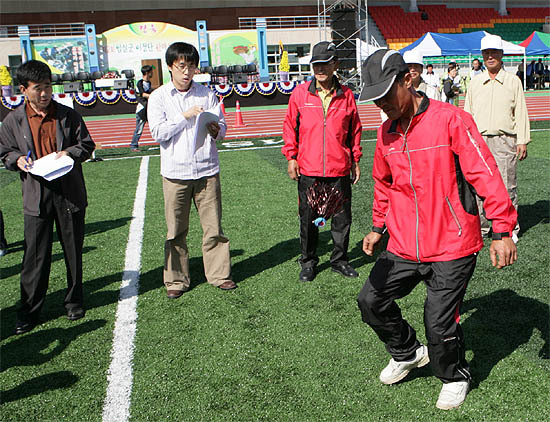 12개 읍·면별로 편을 갈라 벌어진 이날 행사는 족구와 협동달리기, 줄다리기 등의 체육행사가 펼쳐졌다.