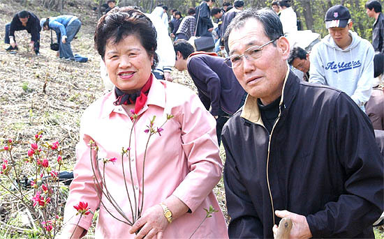 김씨 부부는 지난 13일 감나무 묘목 35그루를 기증한 데 이어 20일 철쭉 200주와 감나무 묘목 10그루를 추가로 기증하고, 이날 수업을 같이 받는 학생 30여명과 함께 학교 뒷산 등산로 길가에 철쭉을 심었다.