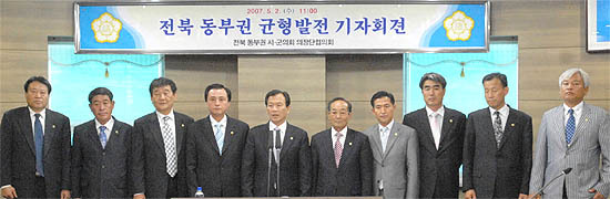 2일 동부권 6개 시,군 의장단 협의회(회장 배종선)는 순창에서 공식모임을 갖고 전북도에서 동부권 균형발전 사업 추진단 구성과 특별회계 마련 등 제도와 대책을 마련 해 줄 것을 건의하는 성명서를 발표했다.