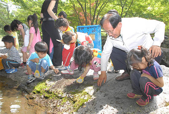 군은 이를 위해 28일 강인형 군수를 비롯 어린이, 관광객 등 50여명이 참석한 가운데 올해초부터 인공사육한 토종개구리 100여만마리 중 50여만 마리를 강천산 병풍폭포 등 주요계곡에 방사했다.