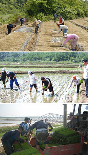 직원들은 영농철을 맞아 농촌인력의 감소와 고령화로 인해 적기 영농에 많은 어려움을 겪고 있는 농가를 위해 지난 27일 남원시 월락동 소성섭씨 논 700여평에 모내기와 뜸모 식재 등 농촌일손돕기 봉사활동을 펼쳤다.