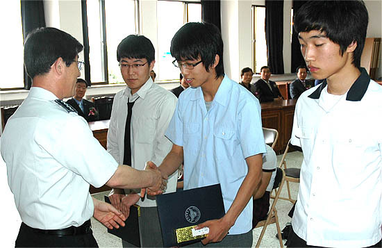 경찰은 이날 청소년 선도 활동에 공이 많은 BBS 위원 김옥식씨 등 2명에게 감사장을 수여하고 모범 청소년으로 뽑힌 고산고등학교 3학년 유수중 학생 등 4명에게 표창장을 수여하고 장학금을 전달했다.