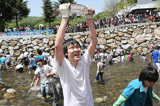 송어잡기 체험은 1회당 20분씩 진행되며 참가비는 어린이(15세미만)는 2000원, 어른은 5000원 이다.