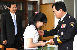 완산서 나유인 서장도 이날 서장실에서 지난해 폐암선고를 받고 투병중 숨진 고 김선운 경사 가족을 초청해 위로금을 전달하고 격려했다.