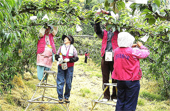 순창군 여성단체협의회(회장 김영주) 회원 50여명은 5일 결혼이주여성가정인 금과면 목동리 라용주ㆍ허미화씨 부부의 과수원 1만여평에서 배봉지씌우기 봉사활동을 펼치며 구슬땀을 흘렸다.