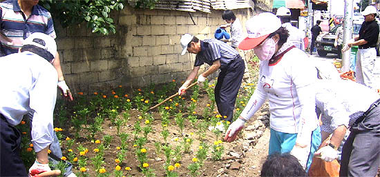 전주 덕진구 금암1동(동장 김형준) 직원과 주민자치위원회(위원장 김일호) 위원은 5일 지역내 남북로 주변 등 쓰레기 취약지 3개지역에 적치된 쓰레기와 건축 폐자재를 수거한 후 꽃밭을 조성했다.