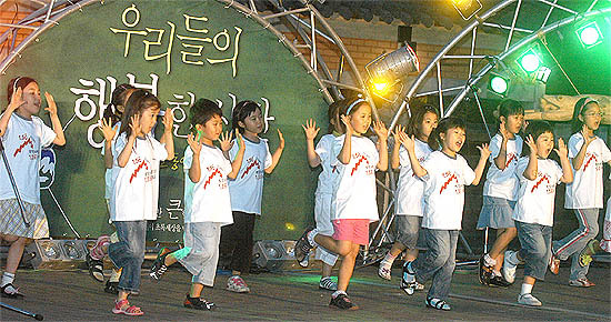 환경의 날인 5일. 전주전통문화센터 너른마당에서 열린 전북환경운동연합 후원의 밤 행사에서 어린이 환경 감시단이 노래와 율동을 선보이고 있다.../김현민 인턴기자 (desk@jjan.kr)