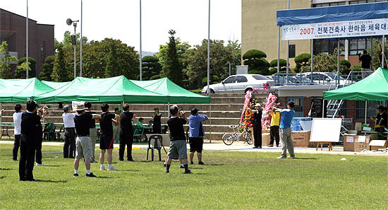 전북건축사회(회장 김주식)가 주최한 이날 행사는 지난해에 이어 두번째로 열린 것으로 도내 건축사들이 총출동, 축구, 족구 줄다리기, 400m계주, 레크레이션 등을 함께 하며 회원간의 단합을 다졌다.