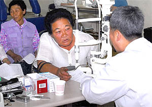 검진은 원광대학병원 안과전문의 김상덕 교수와 한국실명예방재단 한성은 검진팀장 등 4명이 60세 이상 및 2년이내 안과 미검진 노인 117명을 대상으로 시력검사, 굴절검사, 안압검사 등을 실시했다.