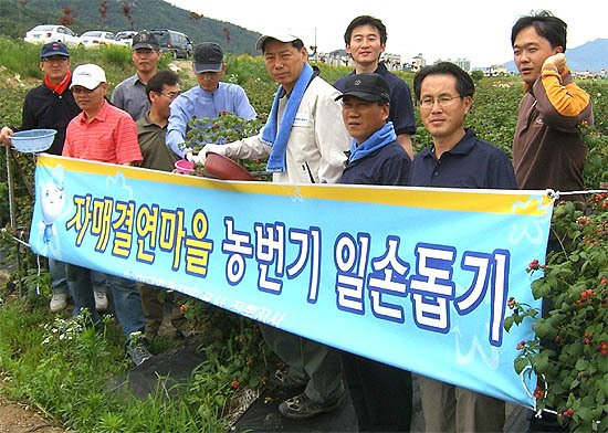 이날 직원들은 200여kg의 복분자를 수확, 인력난을 겪고 있는 자매결연의 어려움을 덜어주는 한편 수확한 복분자중 50㎏가량을 직접 구매해주기도 했다.