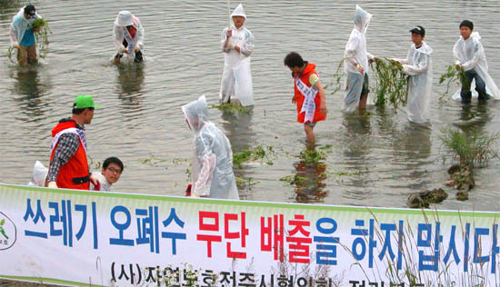 (사)자연보호 전주시협의회(회장 김만천)는 23일 오후 전주시 대성동 전주천 일원에서 회원 과 봉사활동 참가학생 등 200여 명이 참석한 가운데 전주천 환경정화활동 및 생태계 보전을 위한 자연보호 활동을 벌였다. 전주천의 수질 향상을 통해 맑은 물을 지키기 위한 이번 행사에서는 정화능력이 뛰어난 미나리 1톤을 식재하고 다슬기 30kg을 방사 했으며 주변지역의 오물을 수거했다.