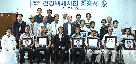 건강백세사진은 전주보훈지청 공무원들이 시.군의 보훈가족 200여명을 찾아가 직접 촬영하고 포토샵 작업을 하는 등 제작에서 증정까지 과정에 참여했다.
