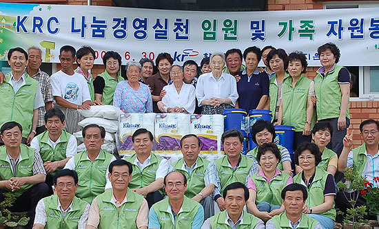 농촌공사 임수진 사장를 비롯 감사· 상임 등 임원 부부와 가족 20명의 봉사단은 6월 30일 진안 ‘백운 노인선교원’을 방문, 몸이 불편한 치매환자들을 대상으로 목욕봉사 등 자원봉사 활동을 벌엿다.