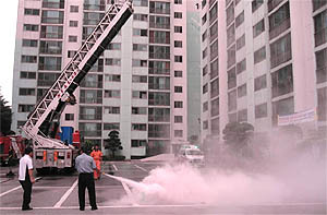 전주완산소방서 관계자는 “초고층 건물에서 불이 났을 때 대형참사와 화재 진압 곤란 등이 우려돼 훈련을 실시했다”며 “화재 진압과 인명 구조, 소화활동설비 사용법 실습, 소방출동로 확보와 기관별 공조체계 구축 등을 주 내용으로 했다”고 설명했다.