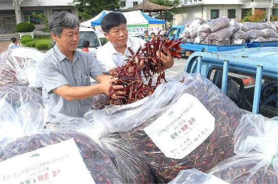 지난달 27일부터 민속마을 광장과 쌍치ㆍ복흥 농협에서 실시되고 있는 2007년산 고추 계약재배 수매에서는 당초 계약물량이 전량 수매되면서 높은 참여율을 보였다.