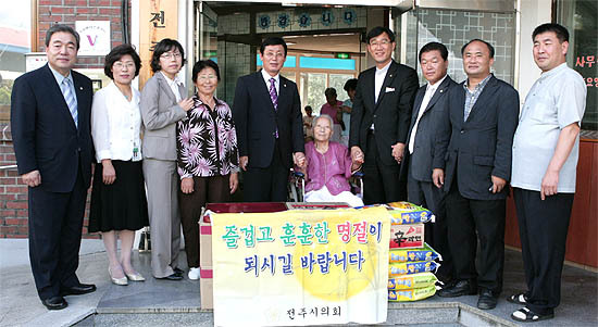 전주시의회 정우성 의장과 최찬욱 부의장, 김명지 운영위원장 등의 의장단과 의원들은 17일 전주 송천동 전주 요양원과 만성동 늘푸른 집, 삼천 3동 선덕효심원 등 4개 노인시설과 원광모자원을 위문 방문했다.