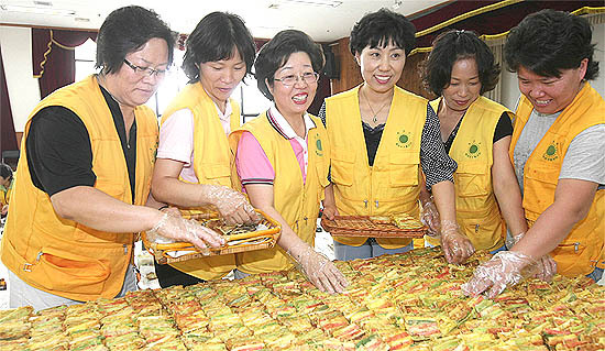 해바라기봉사단이 지난 4년동안 마련해 온 이날 행사는 봉사단원과 KT 사랑의봉사단, 국제결혼 이주여성 등 총 100여명이 자원봉사자로 참여, 명태전과 오색산적, 송편 등을 만들어 어려운 이웃에 제공했다.