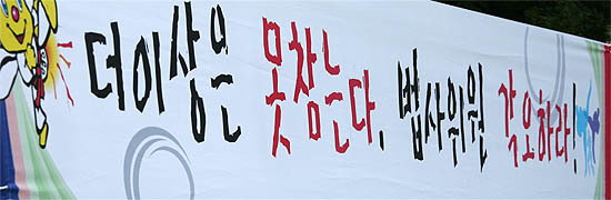내걸린 프랑카드에는 “태권도공원은 우리의 미래 입니다”, “한나라당은 당리당략을 따지지 말고 세계적인 성지조성에 동참하라”, “국회의원들은 우리의 미래를 위해 나서달라”, “도지사는 특별법 조기제정을 위해 혼심의 힘을 쏟아달라”, “특별법통과에 애간장이 녹아버린 지역민들아 국회로 처들어가자”등 많은 내용들이 담겨 있다.