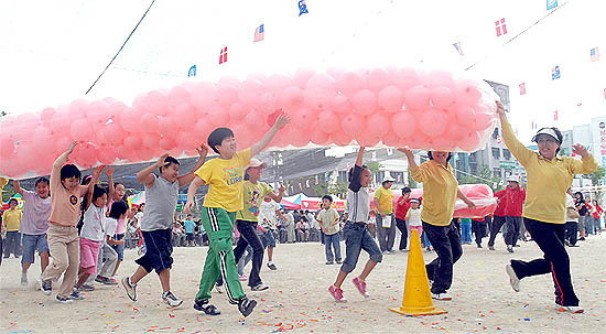 3일 전주 서신중학교에서 열린 제6회 서신동민의날 행사에서 학생들과 주민 500여명이 참석한 가운데 풍선 들고 달리기 게임을 하며 화합을 다지고 있다.../이강민기자 (desk@jjan.kr)