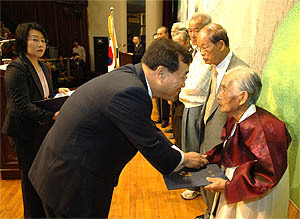 이날 이강수 군수는 노인복지증진에 대한 공로를 인정받아 감사패를 받았으며 김성순씨(고창읍) 등 모범노인 14명에게는 군수표창이 전달됐다.