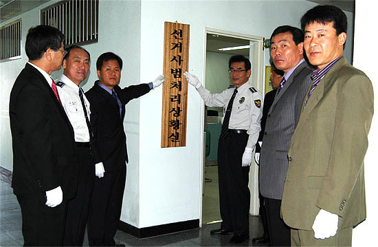 장수경찰서(서장 김성근)는 22 수사과 지능범죄수사팀 사무실내에서 제17대 대통령선거 선거사범처리상황실 현판식을 가졌다.