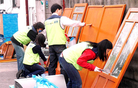 KT전북 동부네트워크센터 사랑의 봉사단(단장 홍득표)은 최근 전주시 금암동에서 대장암으로 가장을 잃고 어려운 환경속에서도 꿋꿋하게 생활하고 있는 모자가정을 방문, 집수리 봉사활동을 벌였다.