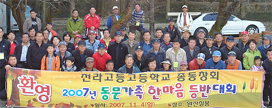전라고 총동창회(회장 문무창)는 4일 전주 완산칠봉에서 200여명의 동문과 가족들이 참석한 가운데 ‘동문가족 한마음등반대회’를 가졌다.
