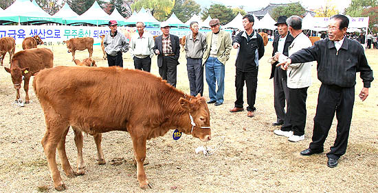 무주군지남공원에서 열린 제12회 무주 반딧불 한우경진대회에서 정봉준(안성면)씨와 황성태(적상면)씨가 미경산종빈우와 암송아지 부문에서 각각 최우수상을 수상했다.
