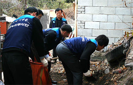 토지공사 전북지역본부(본부장 유영일) 온누리봉사단원들은 5일 전주시 만성동 소재 맞춤형 보금자리 가꾸기 사업 대상 가구에서 자재·폐기물 운반 등 집수리 봉사활동을 벌였다.