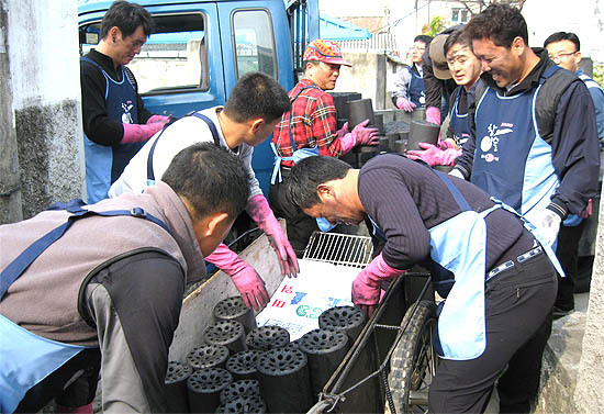 ㈜진로 전주지점(지점장 백관홍) 직원들은 14일 전주시 노송동사무소를 방문, 관내 불우 이웃에 연탄을 배달해 주었다. 이날 ㈜진로 직원 10명은 직접 각세대에 연탄을 배달해 주며 위로했다.