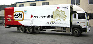 20일 군과 대상(주)에 따르면 전국 각지로 운행되고 있는 대상(주) 청정원 탑차에 ‘장하다 순창’브랜드 슬로건과 함께 ‘장맛의 명지 순창’과 ‘순창고추장’을 함께 각인시킴으로써 ‘순창’이라는 지역브랜드 이미지 제고에 앞장선다는 것.