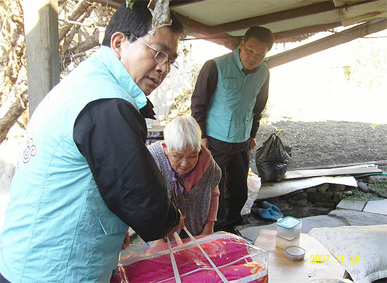 이날 완주군 상관면의 이모씨(86)가 이불을 전달받는 등 10여명의 홀로노인이 이불 또는 연탄 등 건보 전주북부지사 직원들이 정성껏 마련한 겨울나기 용품을 받았다.