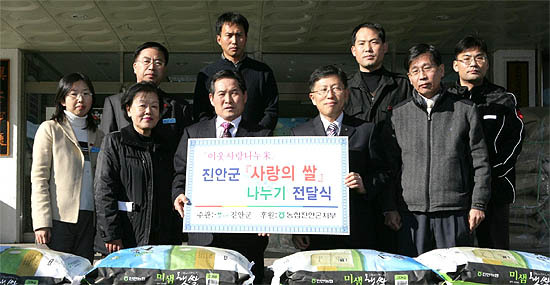 농협중앙회진안군지부(지부장 김완주)는 지난 5일 진안군에서 주관하는 ‘지역공동체 사랑나누米-사랑의 쌀 나누기’행사에 쌀 100포를 전달했다.