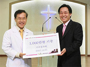 전주 시온성교회 황세영 목사가 예수병원 발전기금 1000만원을 기탁했다.