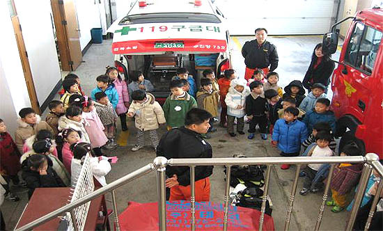 ‘무진장관내 어린이 안전한 겨울나기’일환으로 추진된 이번 체험교실에서는 소방업무에 대한 설명과 소화기사용법, 119구조대 차량과 구급차량의 장비 관람등으로 이뤄졌다.