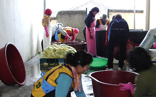 익산 왕궁농협(조합장 이종호)은 지난 14일 농가주부모임 회원 20여명과 함께 ‘2007 사랑의 손잡기 김장 봉사대 발대식’을 갖고 배추 500포기로 김장김치를 담아 관내 소년소녀가장, 독거노인, 불우이웃시설 등에 전달했다.