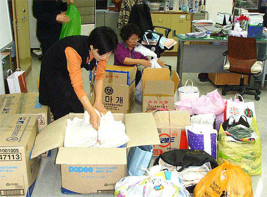 이날 전달된 구호물품은 직원들의 자발적인 참여로 접수된 흡착포 대용 헌옷 2000여점과 격려금 100만원이다.