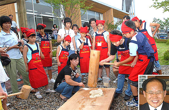 지난 8월 29일 순창을 방문한 일본 학생들의 고추장만들기 체험. 강인형 군수(사진안). (desk@jjan.kr)