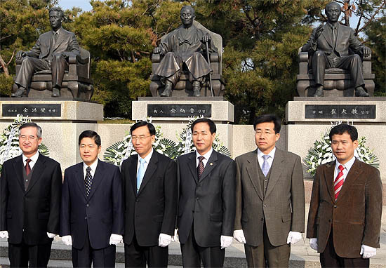 전주지법 오세욱 법원장과 전주지검 박영관 검사장, 김영복 전북지방변호사회장 등 도내 법조계 인사 40여명은 이날 오전 전주 덕진공원에 있는 법조 3성상을 찾아 헌화한 뒤 이들을 기리는 묵념을 했다.