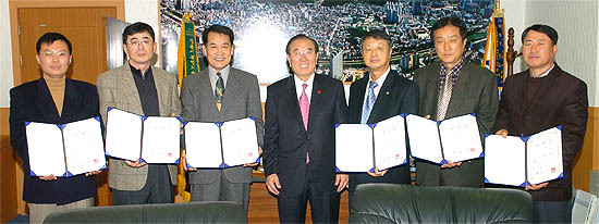 정읍시가 지난 8일 시장실에서 인수공통전염병의 검진과 해외악성가축전염병의 유입방지 등 방역에 총력을 기울이고자 최봉열 공수의를 비롯한 6명의 개업수의사를 공수의로 위촉하고 위촉장을 수여했다.