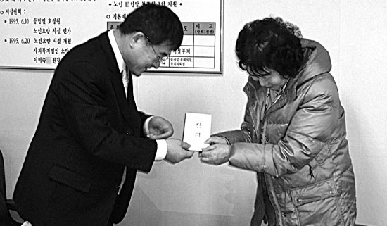 김중곤 청장은 이날 전주시 팔복동 소망요양원을 방문, 노인들의 어려움을 일일이 청취하고 성금을 전달하면서 노인들을 위로했다.