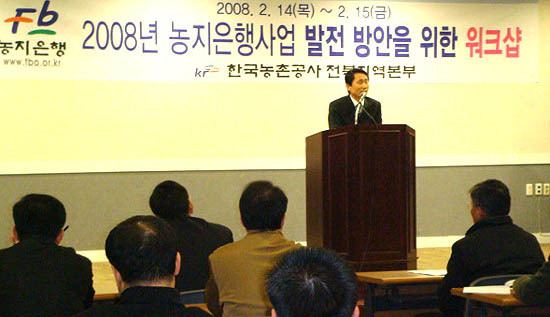 이날 워크샵에서는 △2008년도 농지은행사업 추진계획 설명 △2008년도 사업지침 설명 △교양 강좌 △농지은행업무 발전방안 및 효율적 추진방안 의견수렴 순으로 진행 됐다.