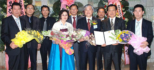 장수군 관계자들이 '2008행복한도시 대상'에서 친환경 부문 대상을 수상했다. (desk@jjan.kr)
