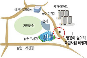 그러나 사업 추진을 앞둔 상황에서 맹꽁이의 산란지인 전주시 삼천동도서관 옆 습지가 말끔히 정리되고 말았다. 웅덩이가 있어 샛길로 통행하는 인근 주민들의 불편을 해소하고, 이 땅을 경제적으로 활용하기 위해 석축을 쌓고 바닥을 평평하게 다진 것.