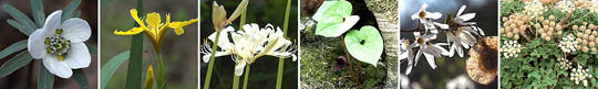 왼쪽부터 변산바람꽃,노랑붓꽃,위도상사화,개족도리,미선나무,갯방풍. (desk@jjan.kr)