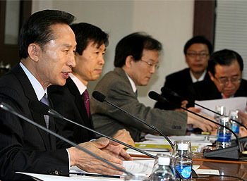 이 대통령은 또 "국민생활과 경제활동에 불편을 주는 법령을 없애야 한다"며 "상공회의소와 중소기업중앙회 등의 경제단체들로부터 제안을 받아 검토하는 방안을 추진토록 하라"고 덧붙였다.